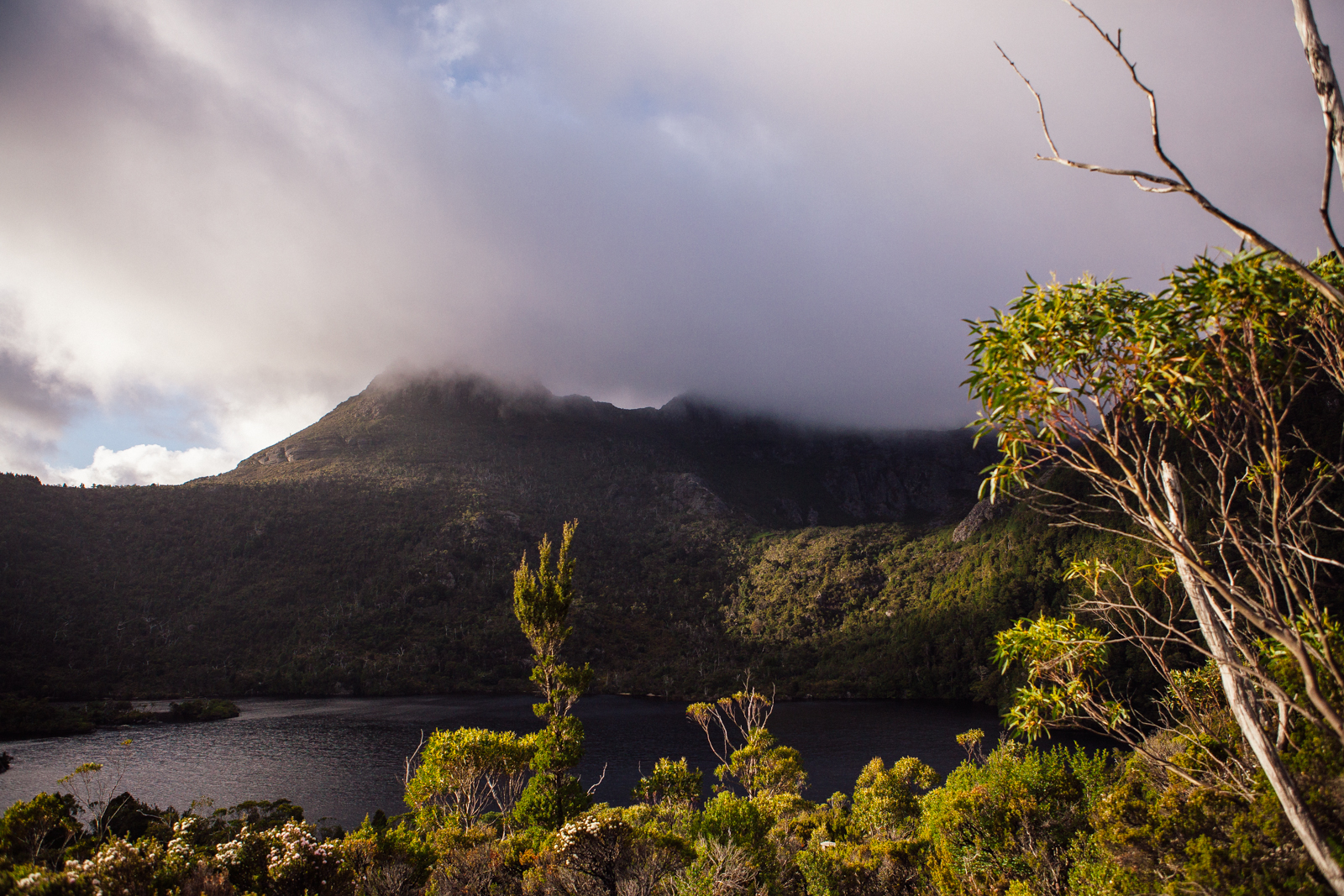 The sun took a long time to come up over the mountains, and the overcast morning meant that it didn't always shine through the clouds, but it was unforgettable nonetheless. Clouds both wispy and thick continually and swiftly covered the all too recognisable tips of Cradle Mountain before hovering elsewhere, making it hard to get a shot of the mountains without cloud cover. I loved the bands of light that streaked across the mountains as the hours passed, and once again the sheer variety of different trees, plants, flowering shrubs and other vegetation didn't cease to amaze me.