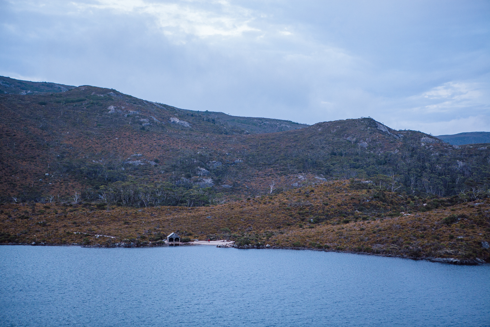 When we got to Dove Lake it was still pretty dark, and very cold. We stood on the banks of the lake, the tide gently lapping before us, waiting for the sun to show a little more. To our left was another photographer, who looked like he'd probably been there for some time, waiting.