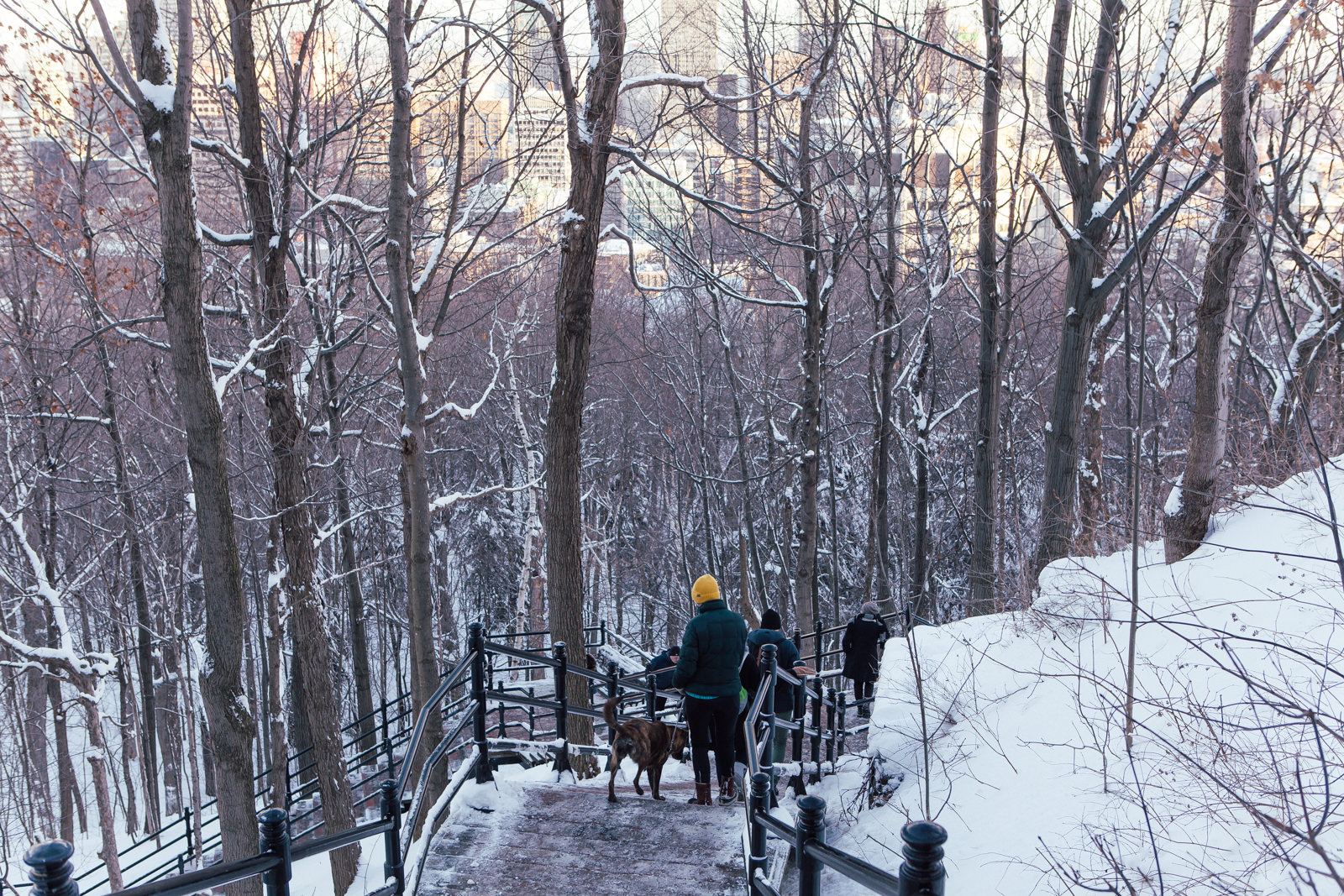 The next day, we set off to explore this city, my brother's new hometown. The photos in this post are just some from our very first afternoon exploring Montréal. A majority of the photos were taken in Parc du Mont-Royal (Mount Royal Park)—a massive mountaintop park in Montréal's city centre. I could only imagine how beautiful it would be in the summer-time, but even blanketed in snow it was beautiful. I laughed when I saw people skiing in the park, once again picking up on little quirks about winter life that were new to me, but completely normal for everyone else.